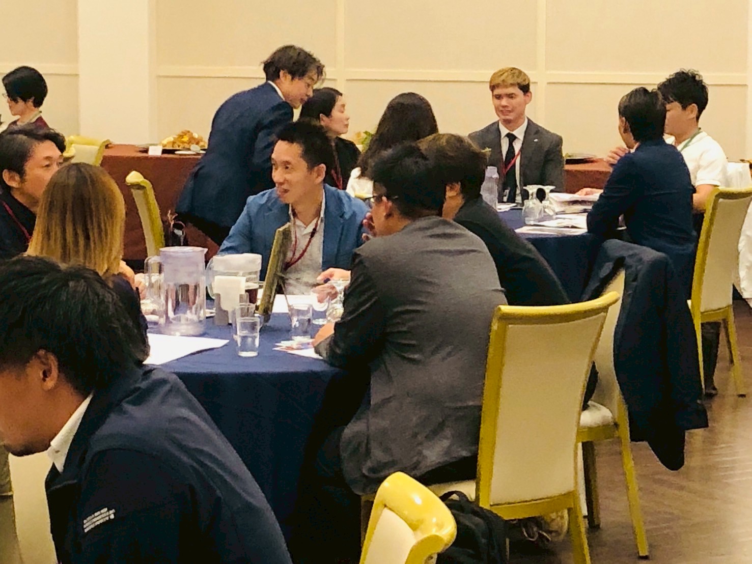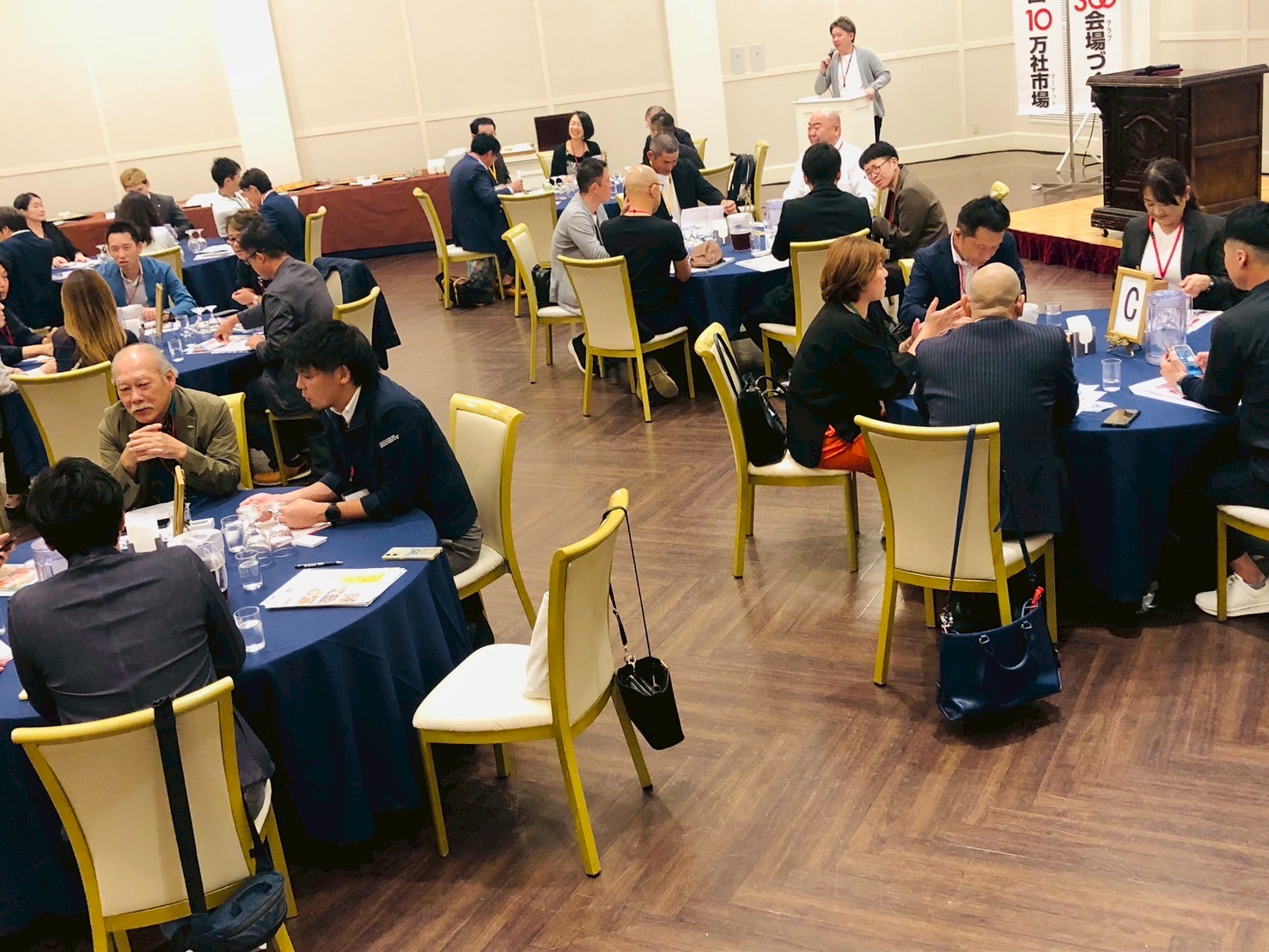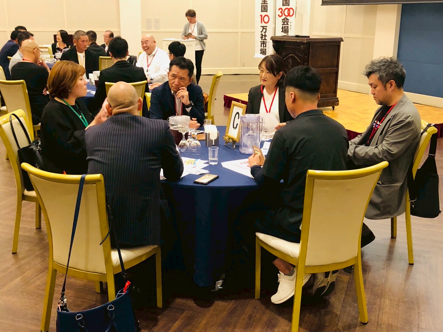 各テーブルにて様々な業種の経営者の皆様で事業PRや、