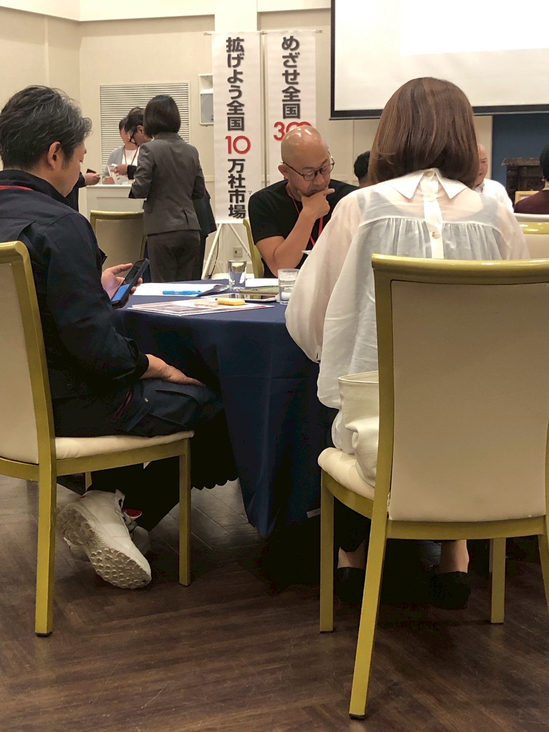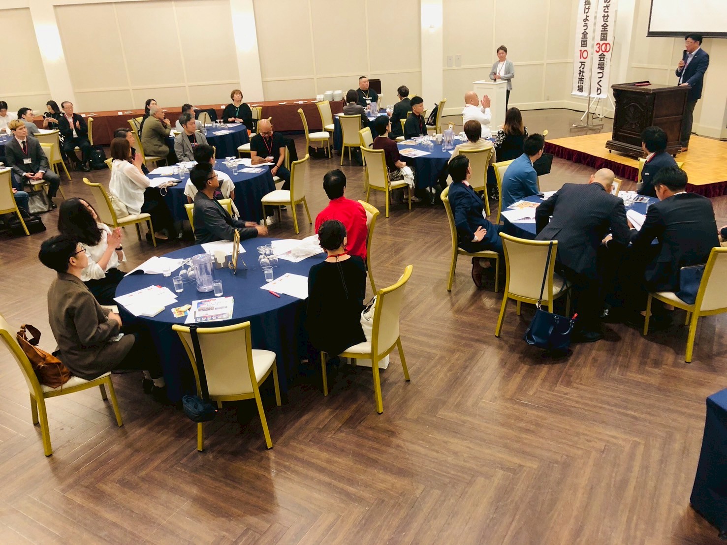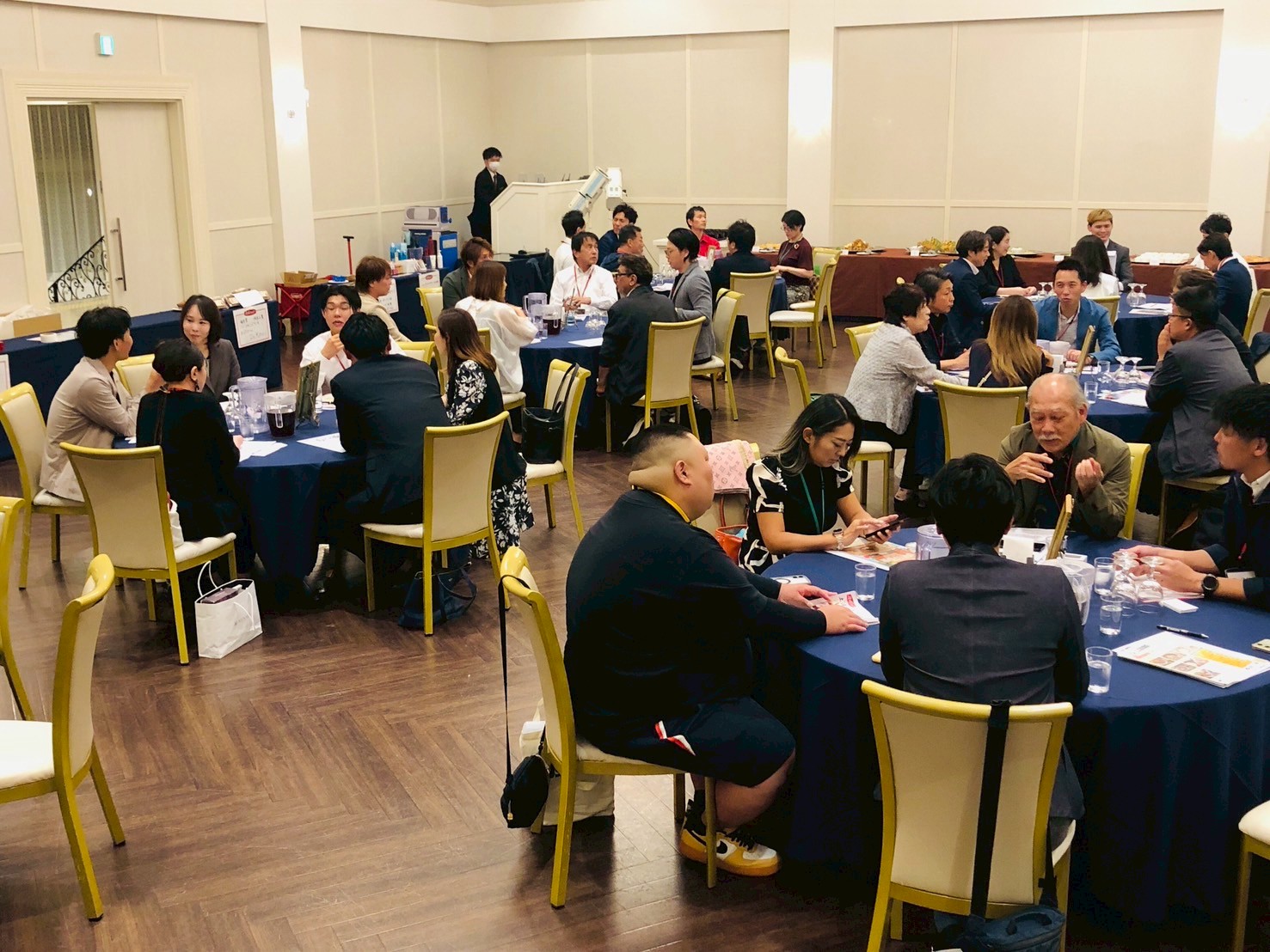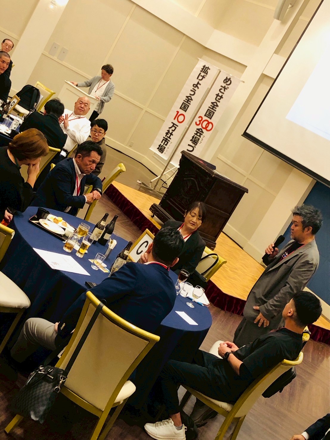 各テーブルにて様々な業種の経営者の皆様で事業PRや、